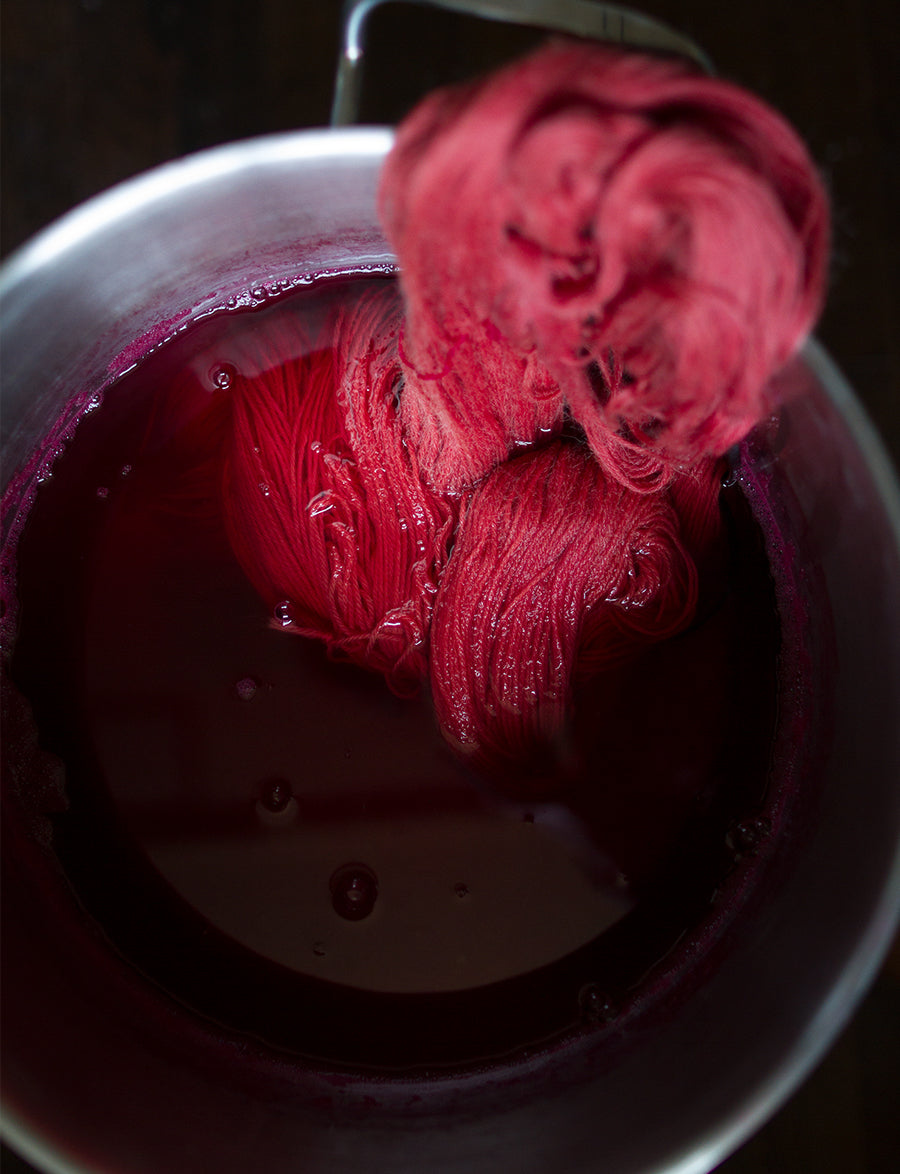 Each skein is unique, not only because of the manual dyeing process, but also because of the origin of the pigment.