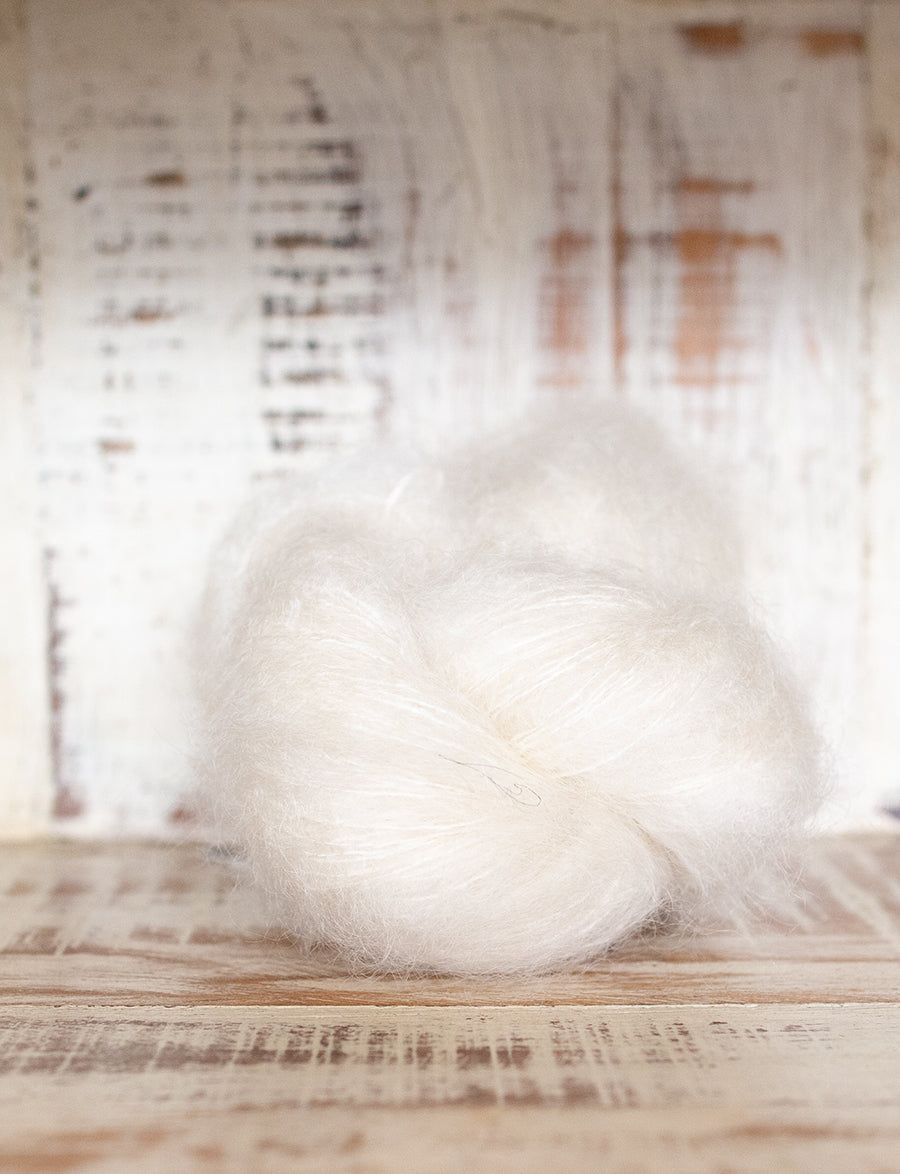 Sublime is an exquisite blend of 80% Angora mohair and 20% silk, where a pure silk heart is softly embraced by a halo of precious mohair.
